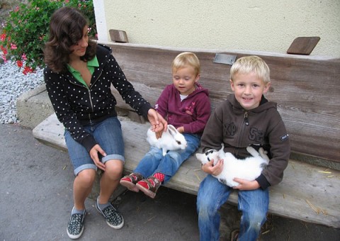 Die Häschen wohnen im Hasenstall am Spielplatz hinter dem Bauernhaus und der Hühnerstall befindet sich neben der Ponykoppel, und die Kinder dürfen uns gerne begleiten wenn wir die frischen Eier holen.